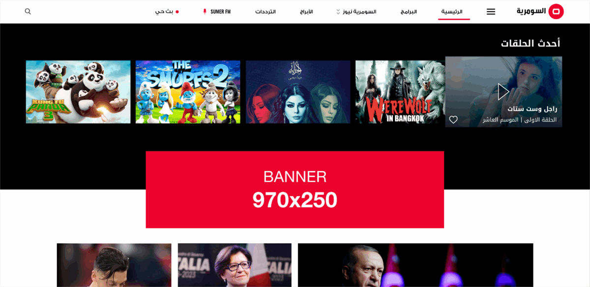 لا يقتصر الإعلان على موقع وتطبيق السومرية على البانرات التقليدية ولكن أيضا يتيح الفرصة لرعاية قسم من الموقع مثل خانات السياسة او الرياضة او الاقتصاد على سبيل المثال لا الحصر.