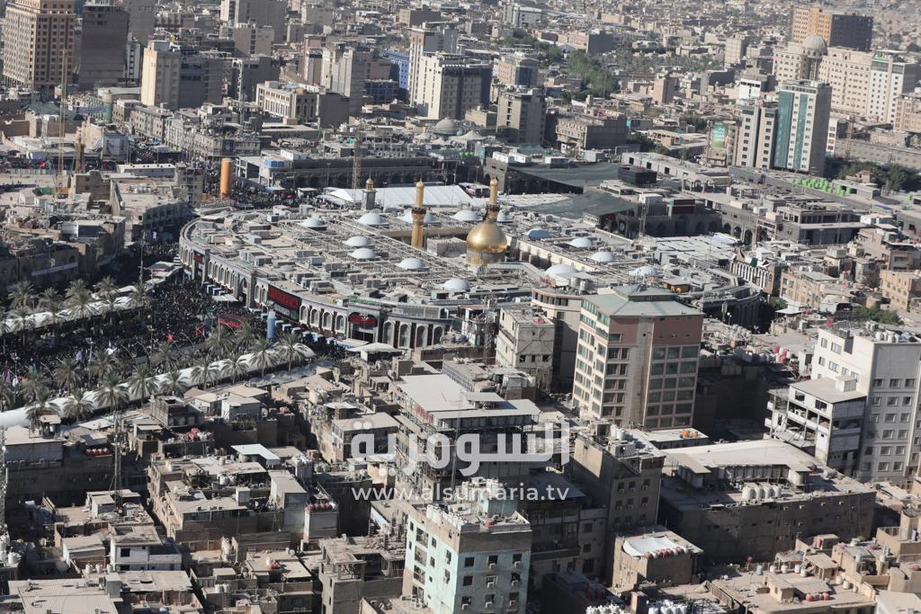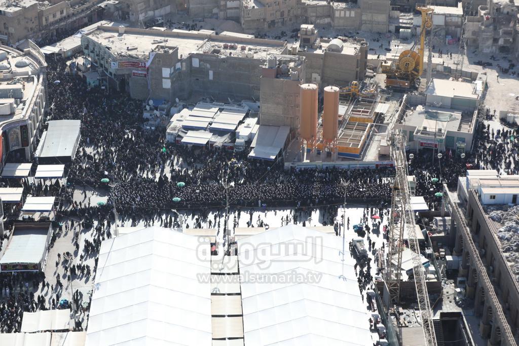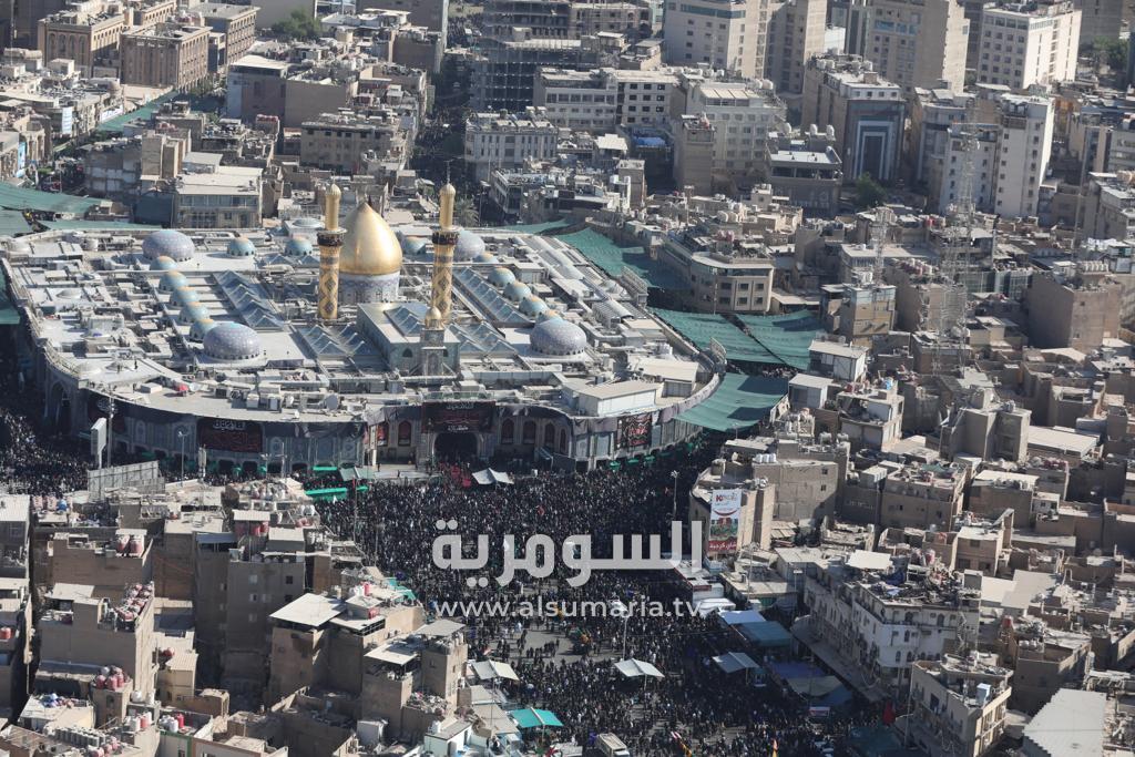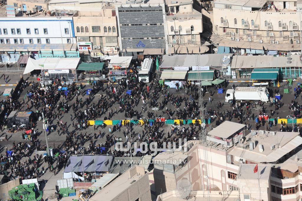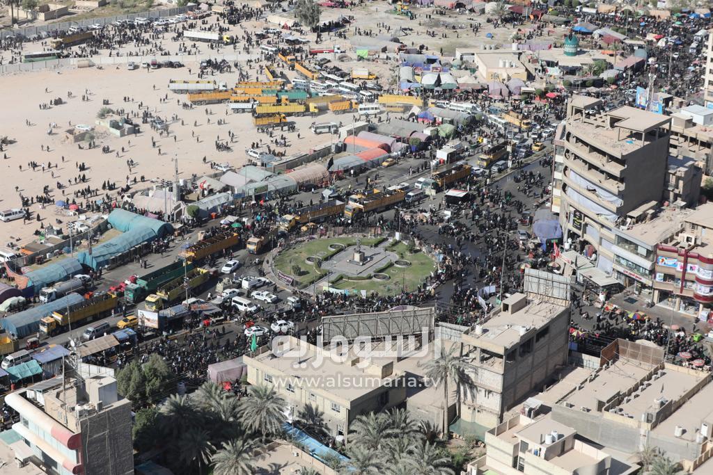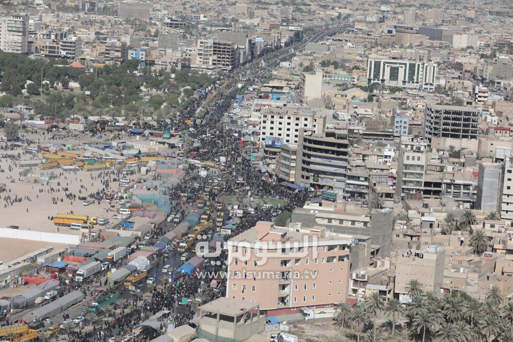 وأظهرت الصور التي التقطها الزميل علي جاسم من الجو، توافد الملايين من الزائرين صوب المراقد المقدسة في كربلاء لأداء زيارة أربعينية الإمام الحسين.